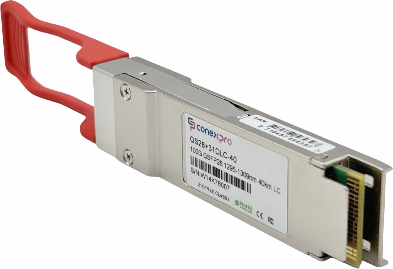 100Gigabitový Singlemode QSFP28 CWDM modul od výrobce Conexpro určený na páteřní spoje s vlnovými délkami (Tx i Rx) 1295 nm, 1300 nm, 1304 nm, 1309 nm, rychlostí 100 Gbps je vybavený 2x LC konektory a je určený pro spojení na vzdálenost až 40 km. Tento modul poskytuje univerzální kompatibilitu, což znamená, že je schopen spolupracovat s téměř všemi dostupnými aktivními prvky. Samozřejmostí je podpora diagnostiky optického spojení pomocí funkce DDM (Digital Diagnostic Monitoring).